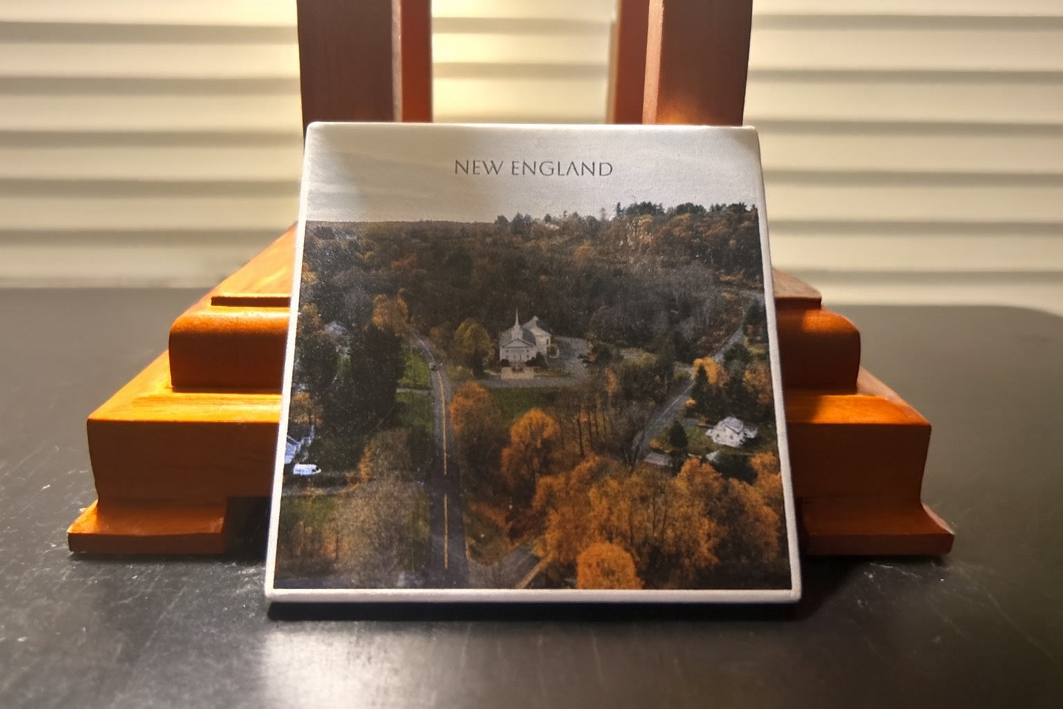 New England Fall Scenic Coaster — Ceramic Cork Back Drink Coaster